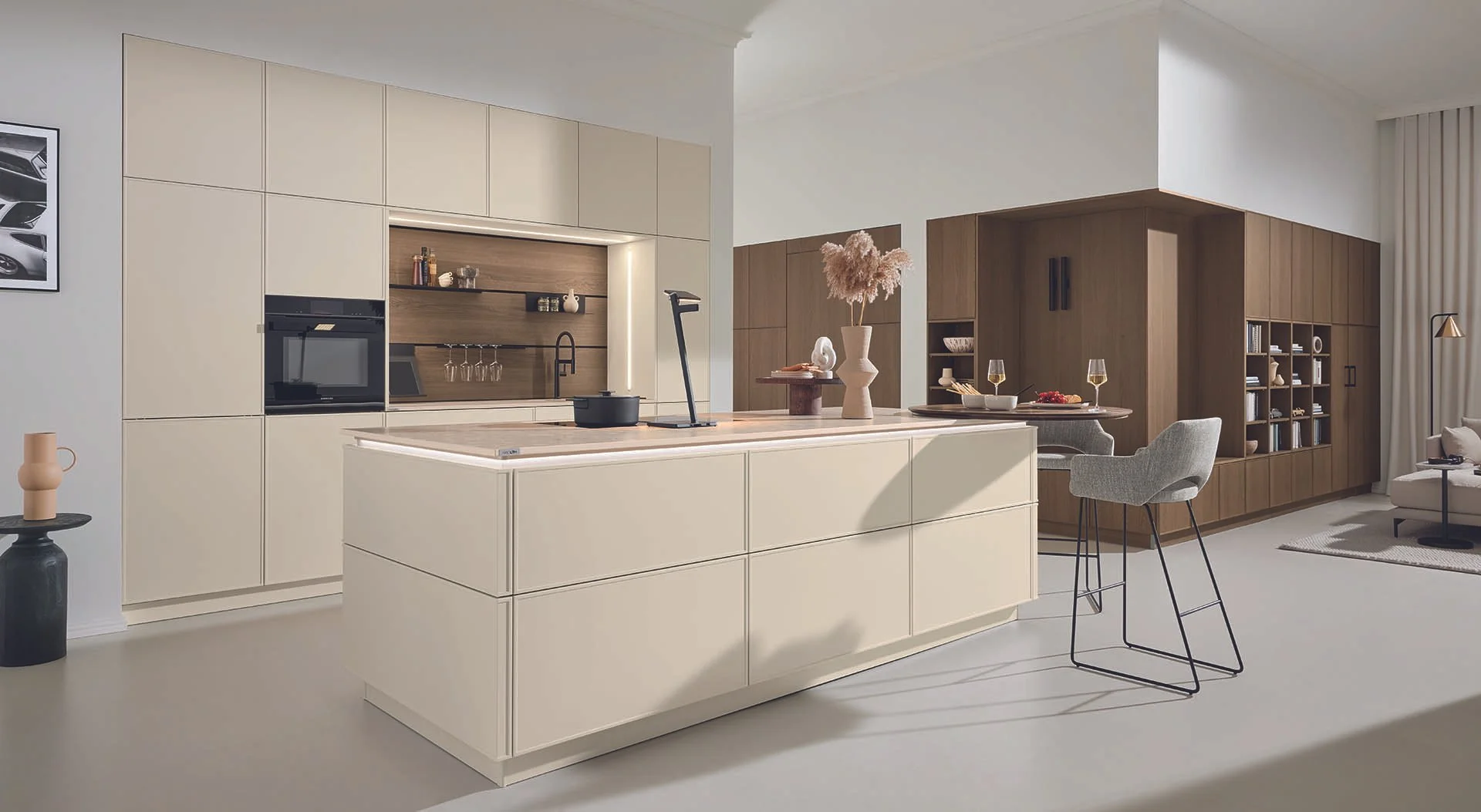 Premium: Bespoke as standard, with premium lacquer, ceramic, metal, and coloured or back-painted glass finishes